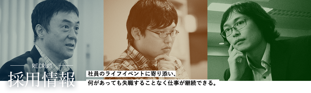 仕事の成果は生身の人間が生み出すものです。当社の社員は何が起きてもナレッジワーカーとして成果を上げられる限り、職を失うことはありませんし、心身ともに健康で高いモチベーションとともに日々仕事に取り組んでいます。